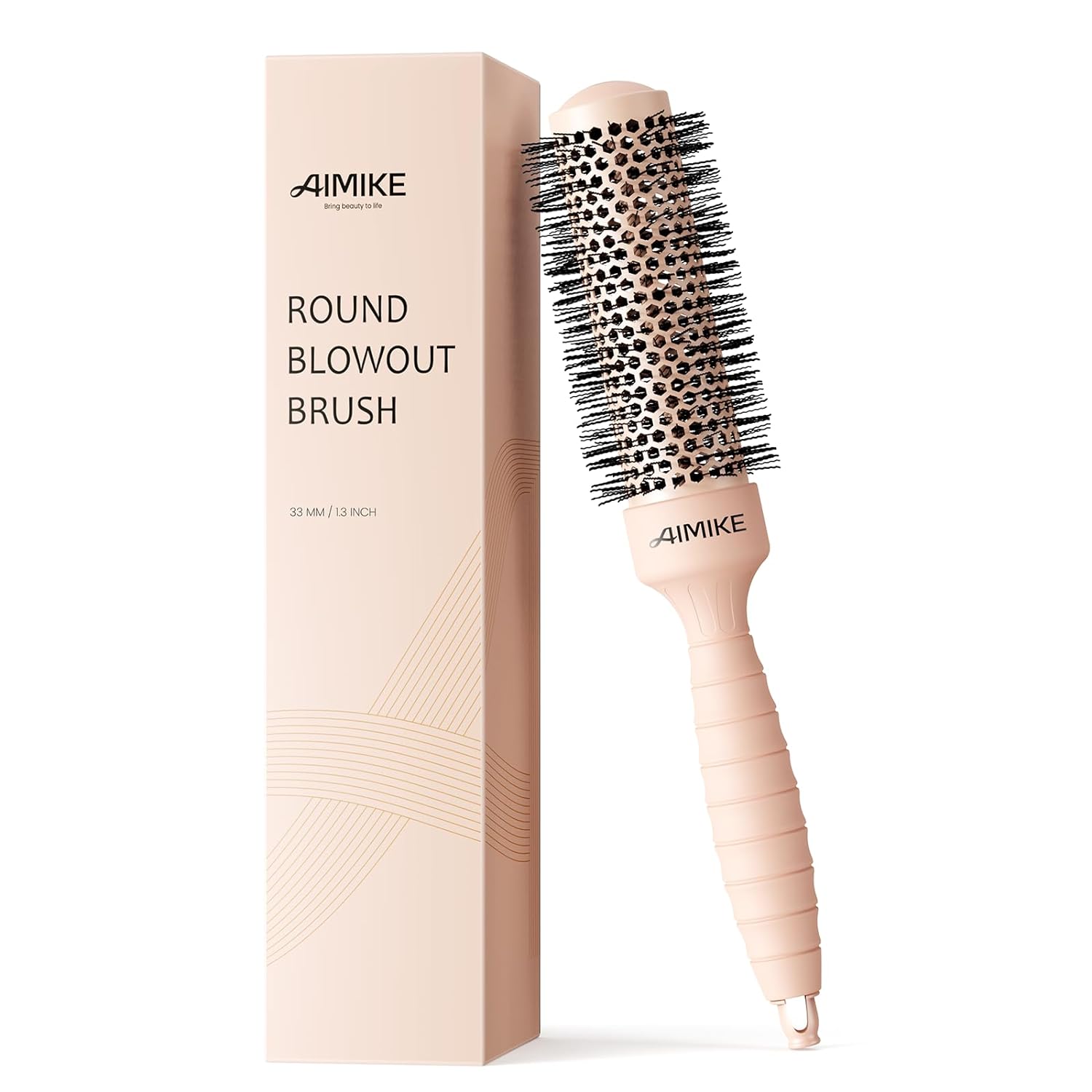 - 【Nano Silver Ion Infused Tech Round Hair Brush】 AIMIKE nano round brush will emits negative ions while blow drying, which helps seal cuticles and eliminates unwanted flyaways and frizz for a sleek shiny hair. And its nano silver tech decides its hygienic feature and longer lifespan.